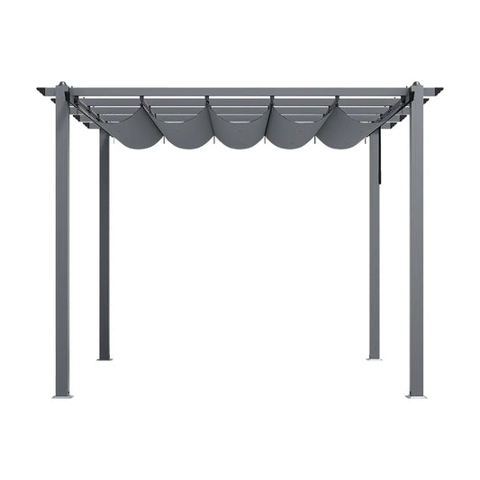 Retractable Pergola with Adjustable Canopy & Net Curtains – 3x3m Aluminium Outdoor Shelter, Khaki