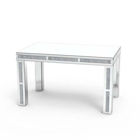 Mirrored Dining Table Silver Glass Rectangular 4–6 Seater with Crushed Diamond Legs