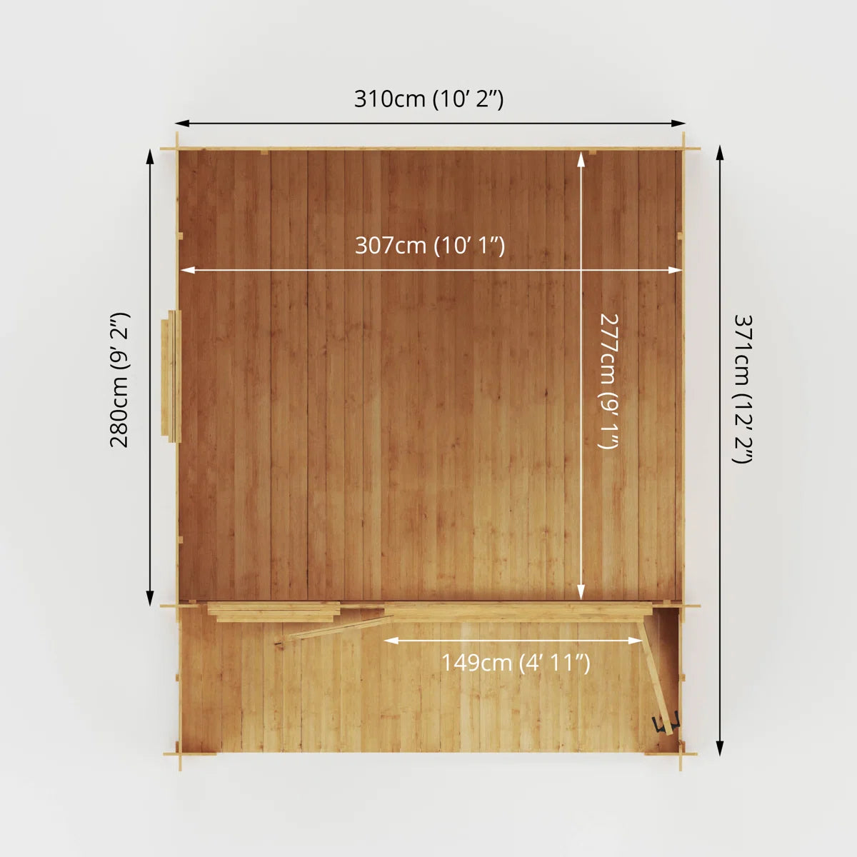 - Tongue and Groove board is used to make the floor and roof, a durable material made up of interlocking boards which create a tight seal. This is perfect for heavy everyday use and storage.