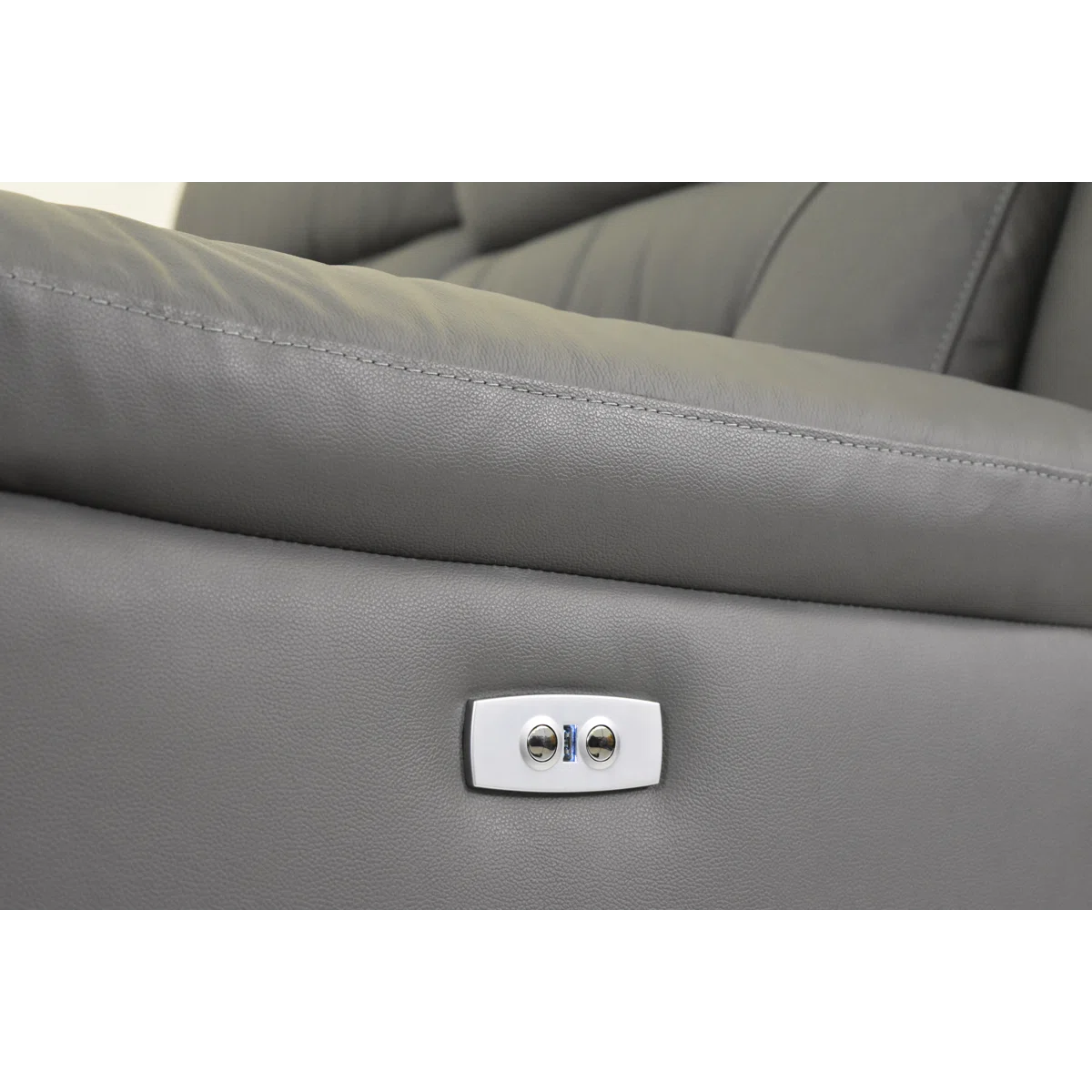 Genuine Leather Electric Recliner Sofa with USB Port – Power Adjustable Chair in Grey