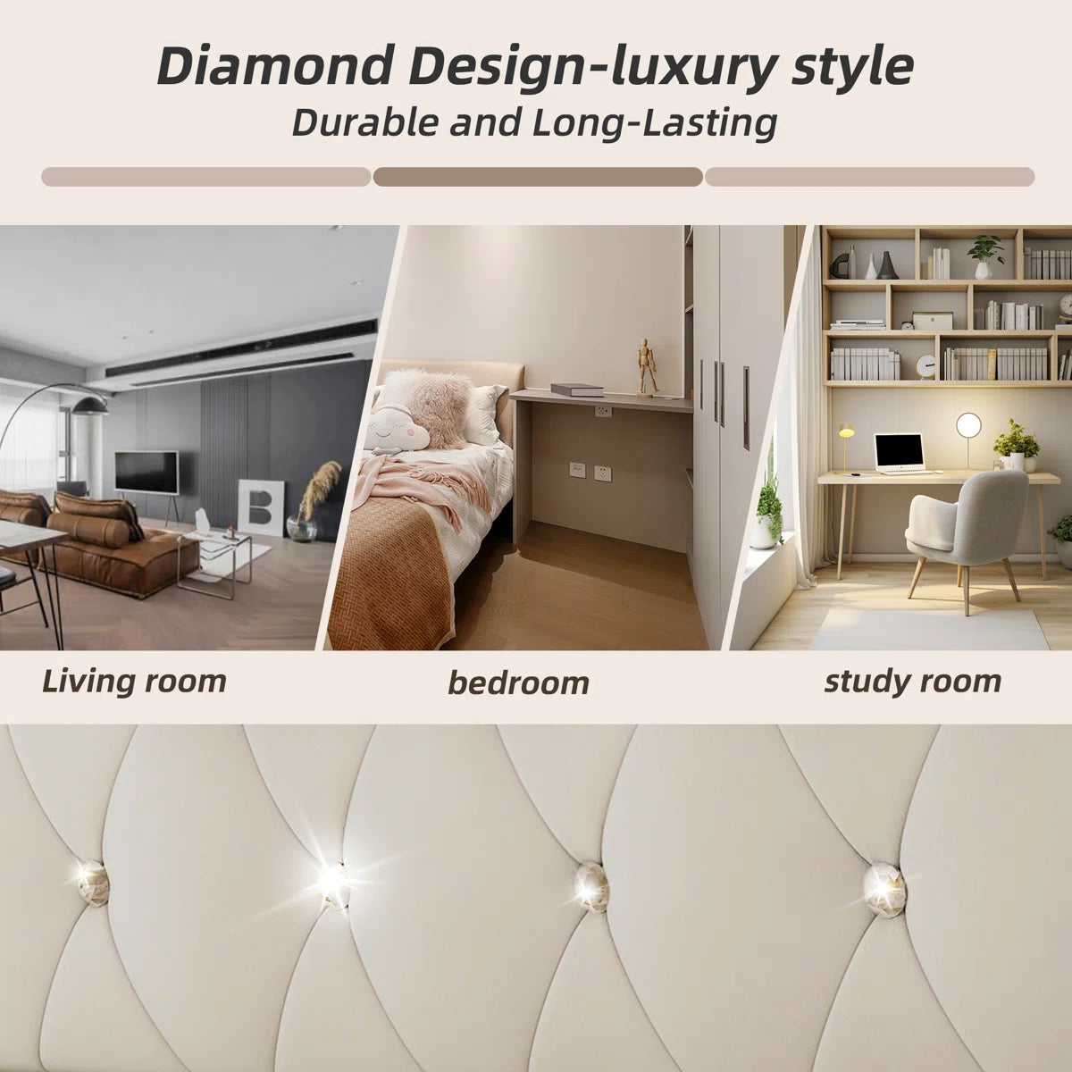 - Elegant and Comfortable Design: Upholstered in premium velvet fabric for a smooth, cosy texture. Features a high backrest with embedded diamond accents, adding an air of luxury to your home. Available in versatile grey and beige shades to complement various decor styles.