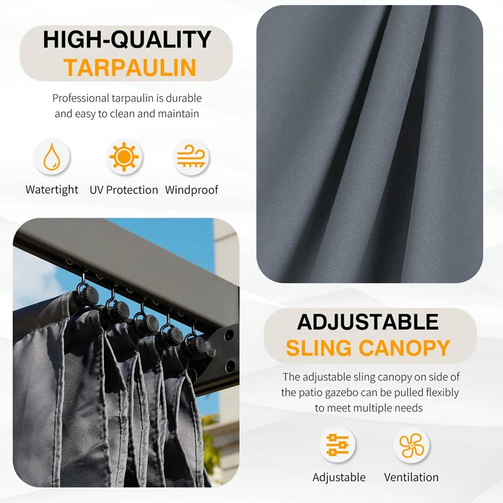 Enjoy outdoor gatherings in style with this durable 3x3m metal frame gazebo. Features built-in lighting options, waterproof polyester canopy, and weather-resistant frame for long-lasting outdoor use. Perfect for gardens, patios, and decks. Ideal for entertaining or relaxing all year round.