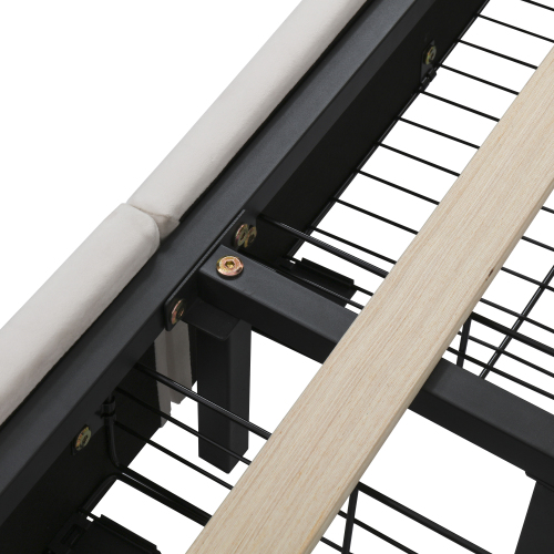 Upholstered bed, For adults and teenagers, 4ft6 double bed 135×190cm, Durable and Sturdy, Beige