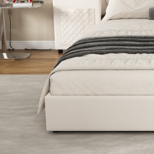 - Practical Storage Features: Equipped with a headboard featuring storage pockets (ideal for small items like books or phones) and two wheeled storage drawers, maximizing space-saving convenience.